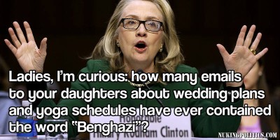 Isn’t there that Yoga routine called the Benghazi? That’s where you end up with your head so far up your butt you can’t hear the calls for help from your diplomatic embassy.