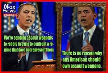 Each Syrian rebel shall submit a request from a short list of officially approved assault weapons. Such weapons shall have a magazine capacity of no more than 20 rounds. A background check will be performed on each rebel and within 7 working days the background check will be returned as either “disapproved” or “not disapproved.” If “not disapproved,” the rebel may then take possession of his or her weapon. Unless the system is so backed up by high volume and administrative indifference that the background check takes 30 – no, 60 – no, maybe 90 days. Oh, and after October 1, fingerprinting is required and the Syrian rebel will have to take a government approved safety course. And there will be a much shorter list of weapons to choose from.