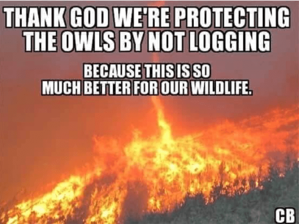 1. Hummmmm…roast owl. Also roast deer, elk, bear, squirrel, chipmunk, moose, wolf, mountain lion, wolverine, coyote, eagle, hawk, and maybe a Bigfoot or two. Yes we are doing an excellent job of forest management.